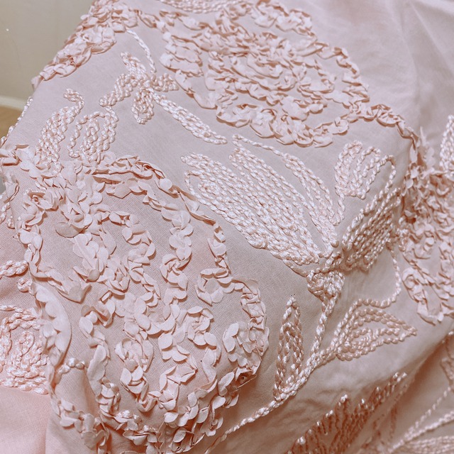 薄めの涼し気なcotton100%の生地に お花の立体的なフラワーモチーフをあしらったfabricです。 上品かつフェミニンな雰囲気の淡いピンク色が優しく、 インテリアやお洋服、小物作りにもおすすめです。 カラー:薄ピンク 生地幅:約148cm(利用可能幅約130cm) 厚み:♡♥♡♡ 素材:cotton100% 伸縮性:なし 数量1=45cm×65cm 数量2=45cm×130cm 数量3=45cm×65cmと45cm×130cm 数量4=90cm×130cm 生地の伸縮性により多少の前後がある場合がございます。 【送料について・はじめに】をお読みの上ご理解ご了承の上ご購入お願い致します(^^) ご不明な際はお問い合わせ下さい^^ なるべく実際のお色に近くなるように撮影しておりますが お使いのスマートフォンやPCのモニター環境等によって多少異なる場合がございます。