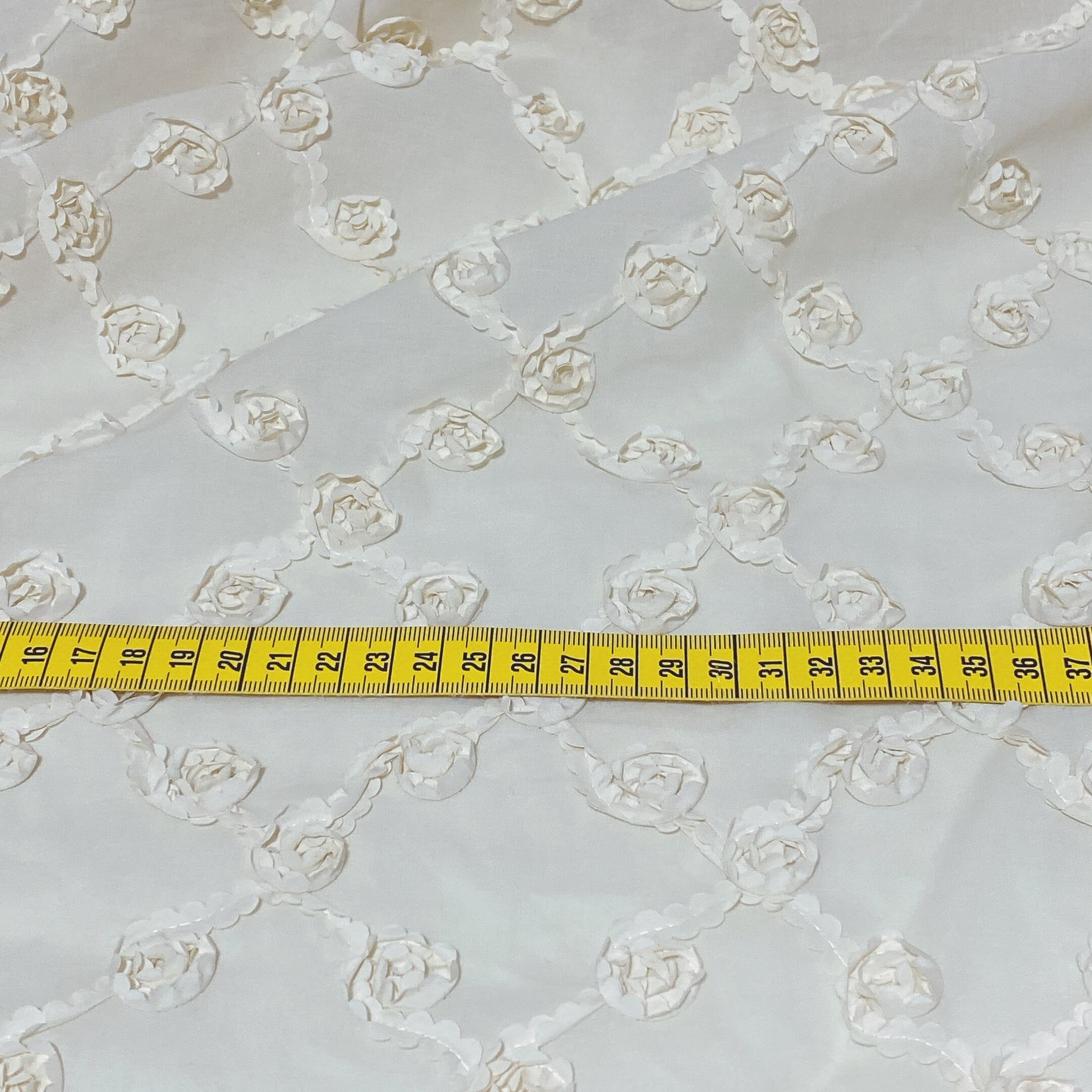 ひらひらのローズモチーフが全面に施されたfabricです。