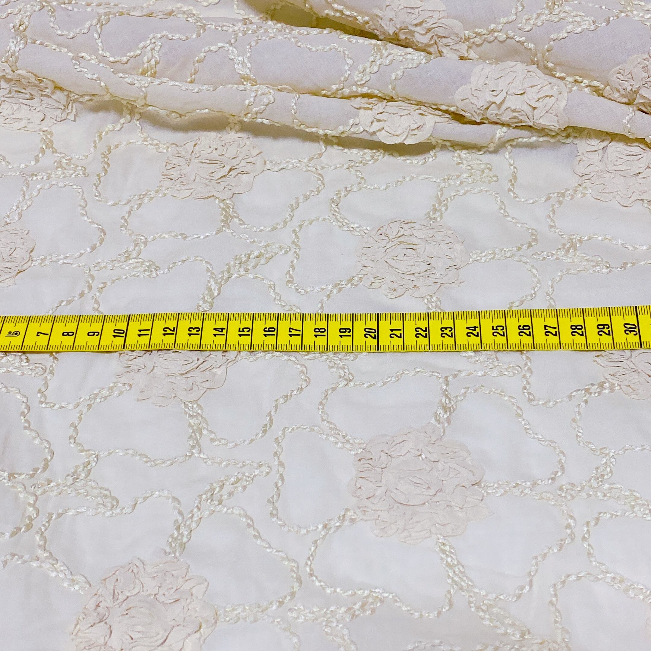しっかりしたお花の刺繍、真ん中はレースで立体感があり