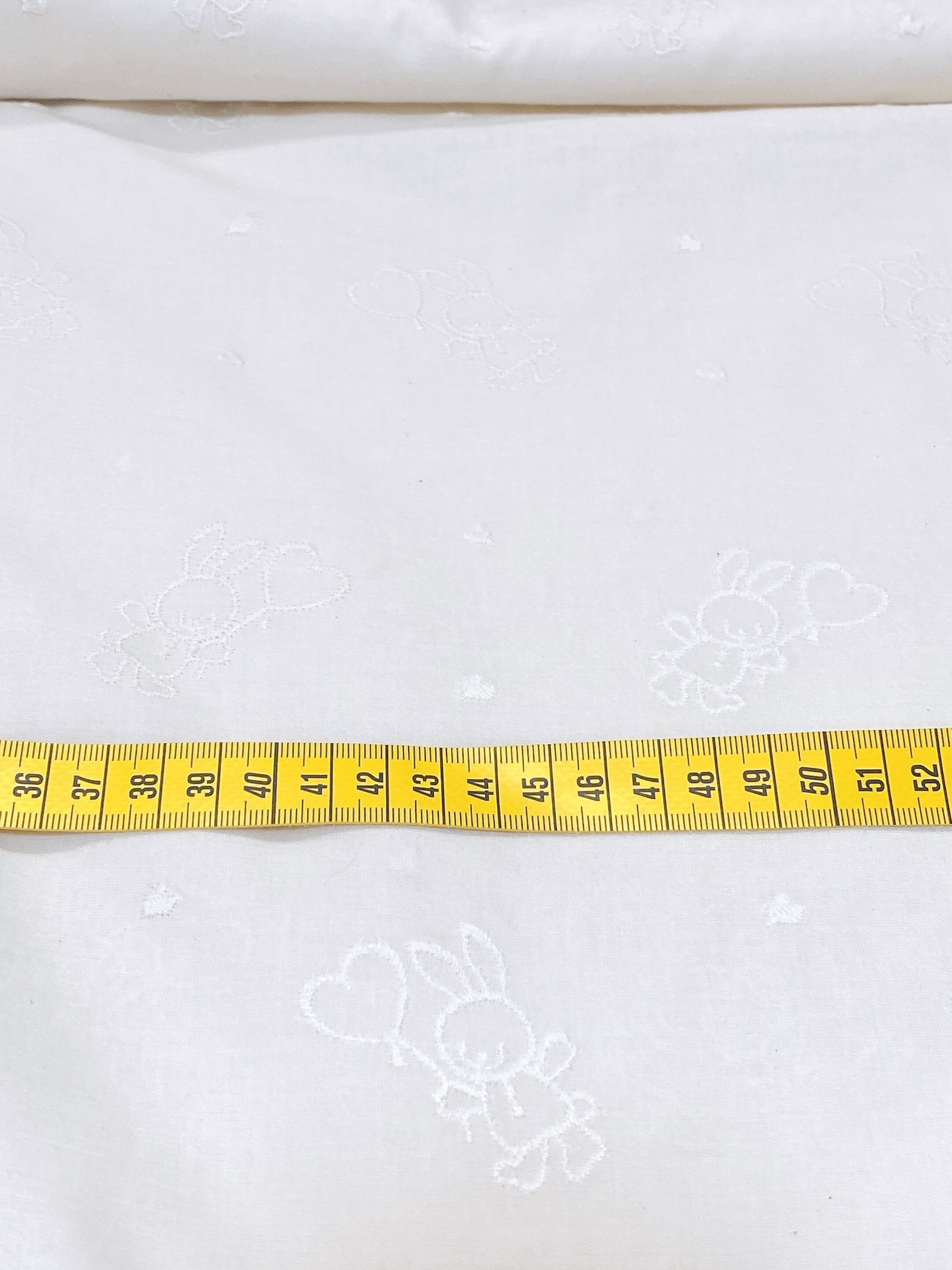 ハート型の風船を持ったうさちゃんの刺繍の入ったコットンのfabricです。